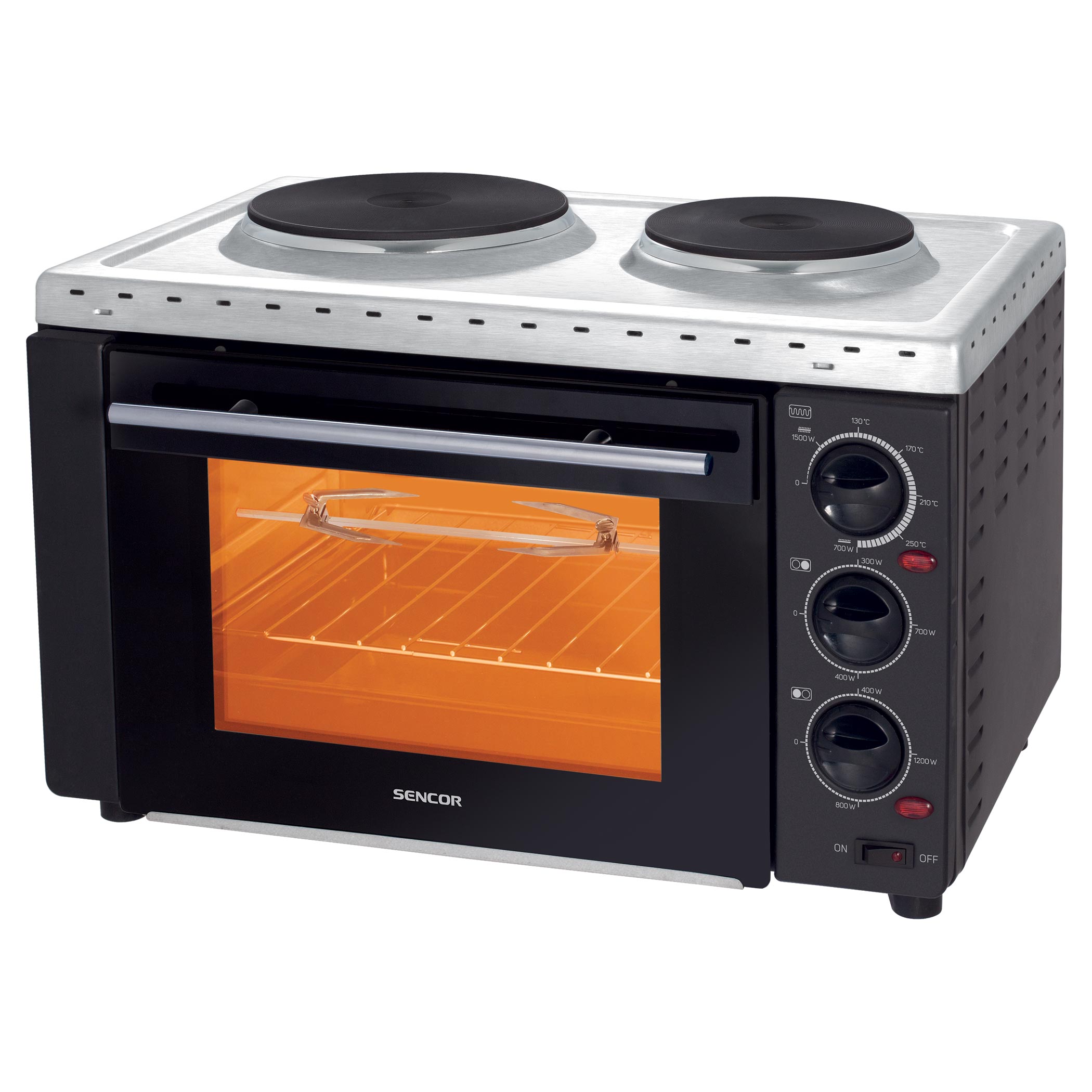 Forno piano con piastre elettriche e griglia con girarrosto