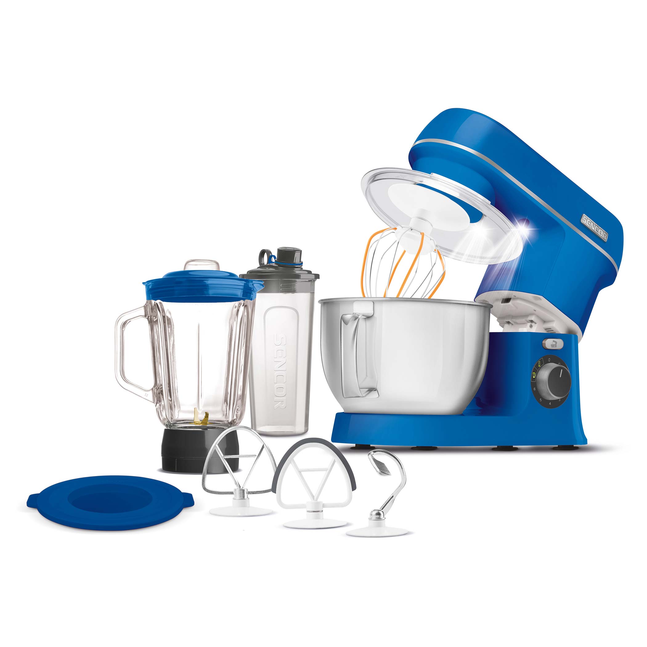 - 4 accessori: gancio per impasti duri, frusta per sbattere e frusta per impasti leggeri