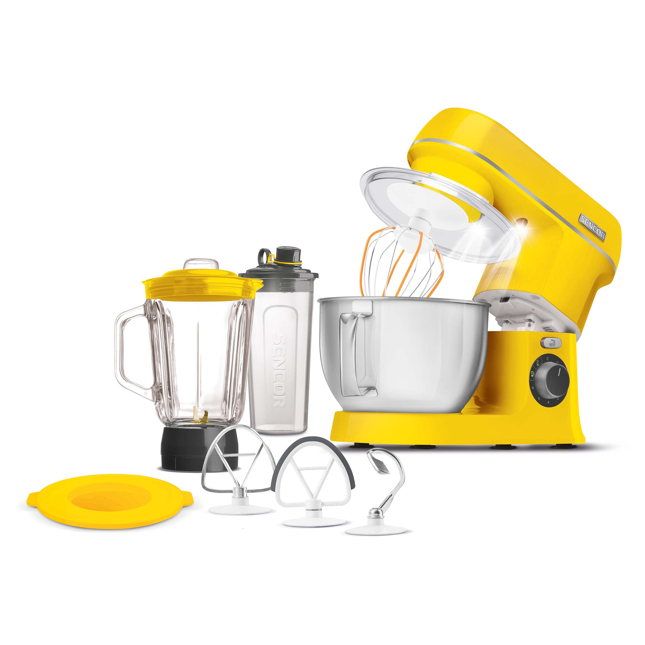 • 4 accessori: gancio per impasti duri, frusta per sbattere e frusta per impasti leggeri
