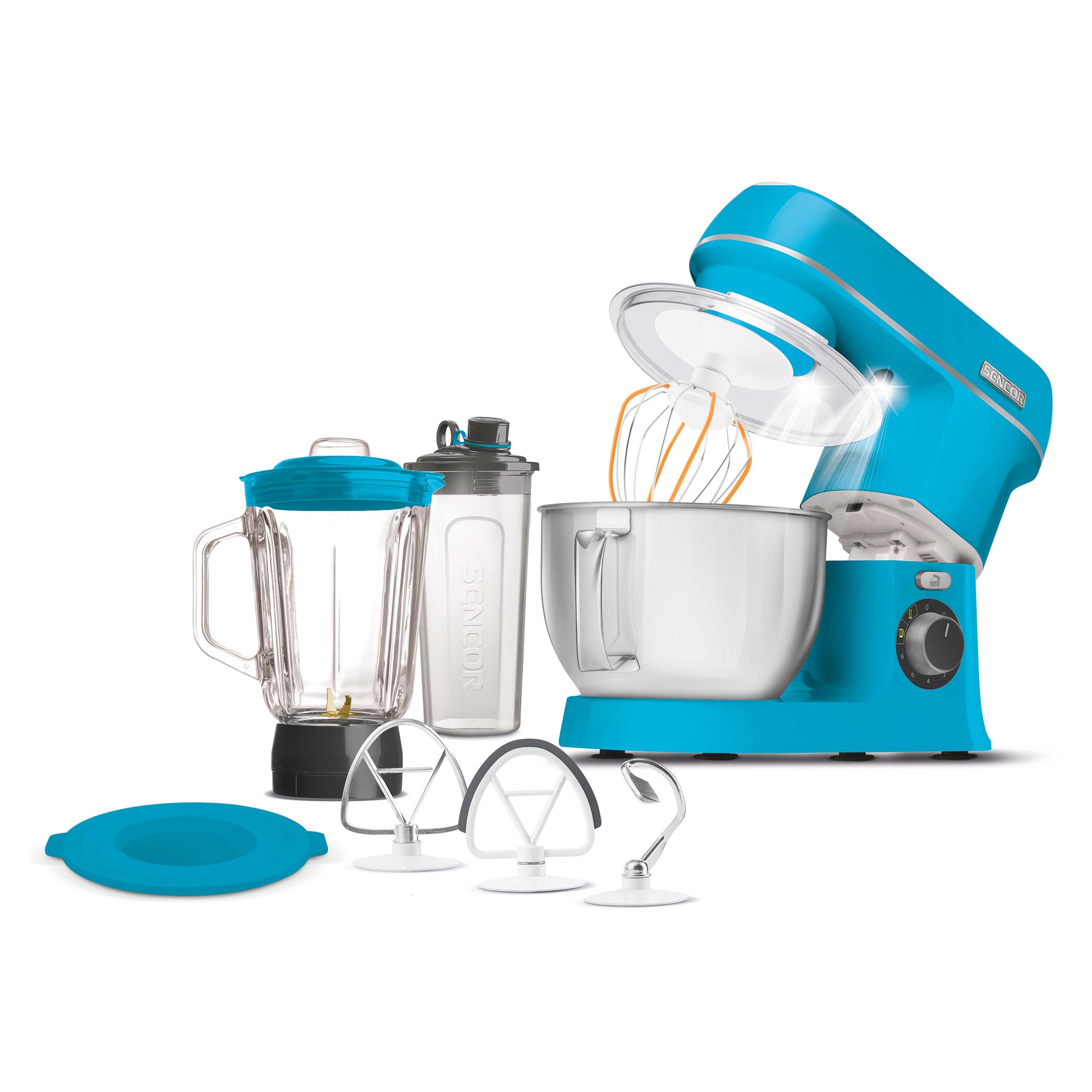 • 4 accessori: gancio per impasti duri, frusta per sbattere e frusta per impasti leggeri